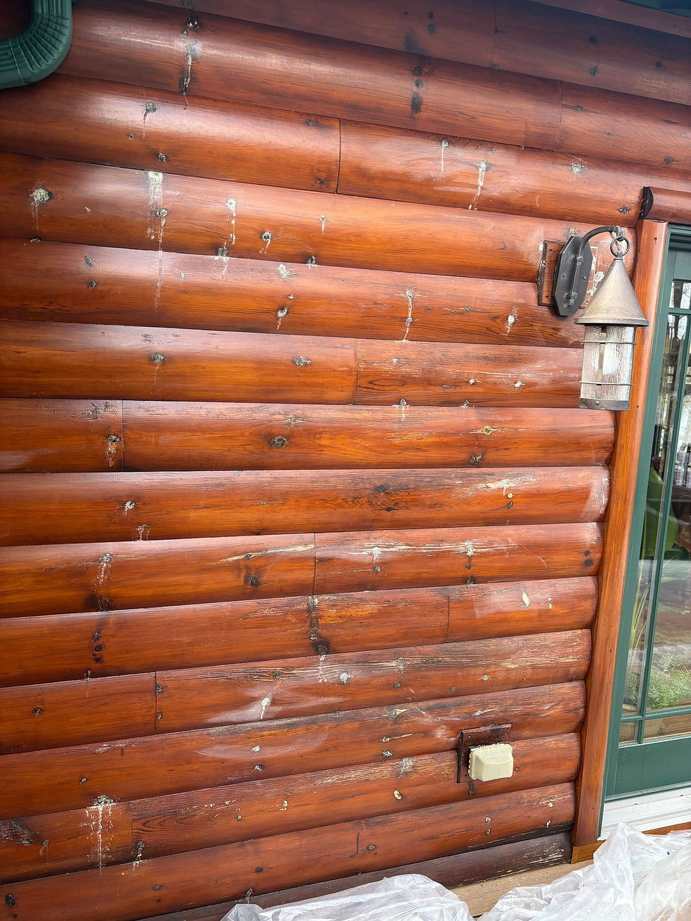 Our dedicated team of professionals put in countless hours of prep work to ensure the highest quality finish. From careful cleaning and surface preparation to the expert application of Teak 0085 stain, every step was executed with precision and care. The result? A refreshed and revitalized log cabin that highlights the natural beauty of the wood while offering long-lasting protection.